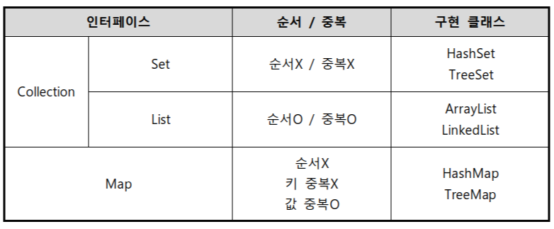 Set/List/Map 등의 인터페이스가 있음 - 이를 구현한 클래스를 이용하면 객체들을 모음저장할 수 있음