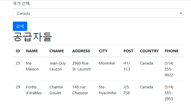 - 받은 country 의 Customer 정보를 리스트로 반환하는 메소드!