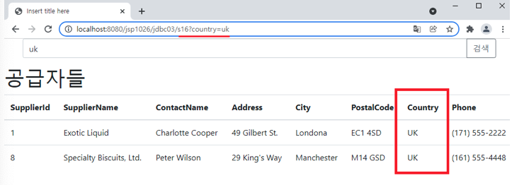 - 메소드명 getCustomerListByCountry, 매개변수 Connection 타입 con, String 타입 country