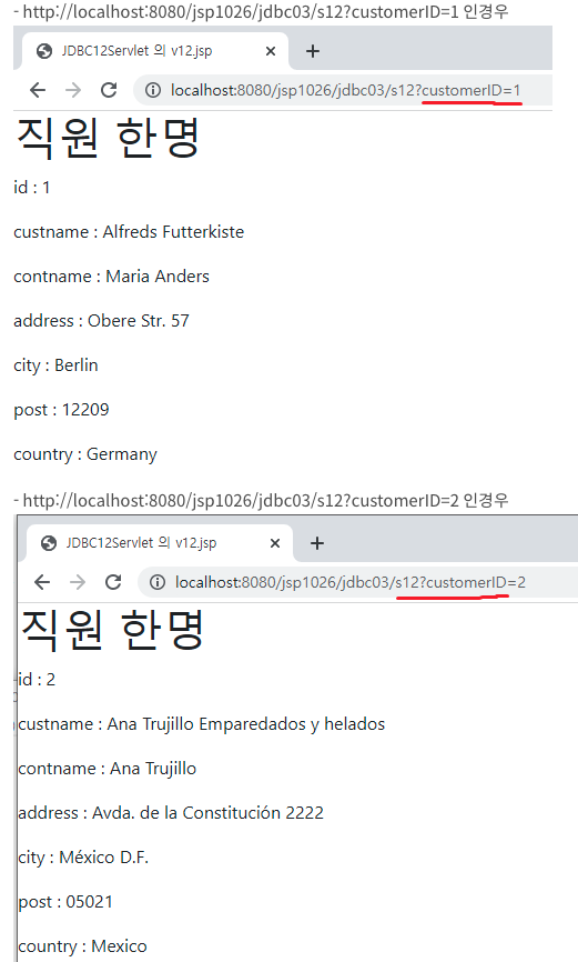 쿼리스트링 ?customerID=1, 2, 3, .. 등 작성