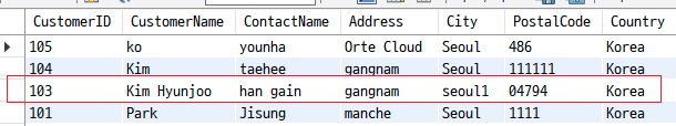 pstmt.setInt 로 메소드의 매개변수로 받아온 customerID 를 ? 에 전달