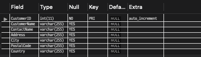 해당 테이블의 각 컬럼의 field, type, null, key, default 등의 정보에 대해 조회할 수 있다
