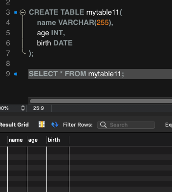 해당 테이블의 각 컬럼의 field, type, null, key, default 등의 정보에 대해 조회할 수 있다