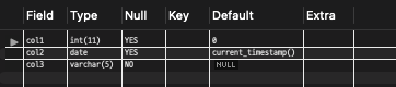 INSERT INTO mytablec3 (col1) VALUES ('aaa'); -- 불가능 (col2 null)