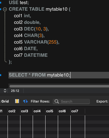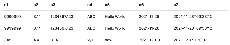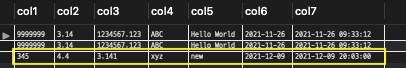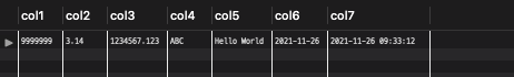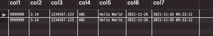 INSERT INTO mytablec5 (col1, col2, col3) VALUES (10, "2020-02-20", 'aaa');