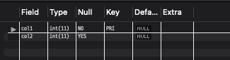 ↓ DESC 로 조회하면 다음과 같이 NULL - NO, KEY - PRI