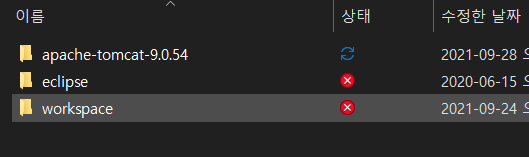 tomcat 9버전 설치 - 압축풀기 - eclipse 가 있는 폴더로 이동