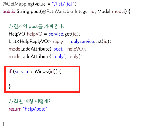 post 로의 getMapping 에서 service.upViews(id) 실행