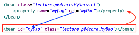 <bean id="myDao" class="lecture.p04core.MyDao"></bean>