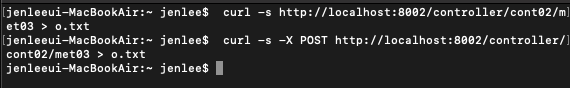 Get 방식의 요청은 Controller01 에서와 같이 해도 되지만 Post 방식은 터미널로 보내야 함 ↓