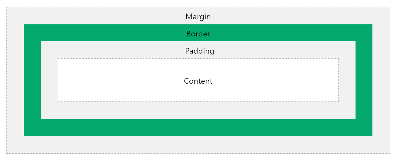 맨 아래의 그림에서 margin, border, padding, content 가 각각 얼마나 차지하고 있는지 표시됨