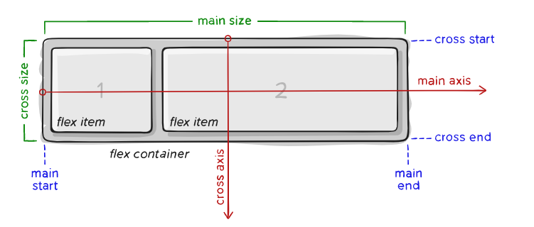 flex item 들은 flex container 의 main 축 기준으로 배치됨