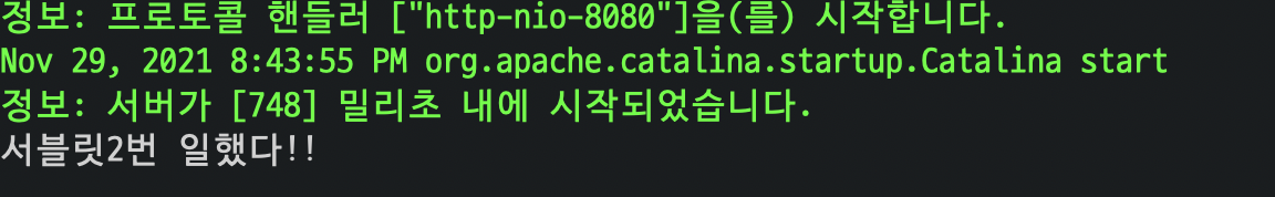System.out.println("서블릿2번 일했다!!");