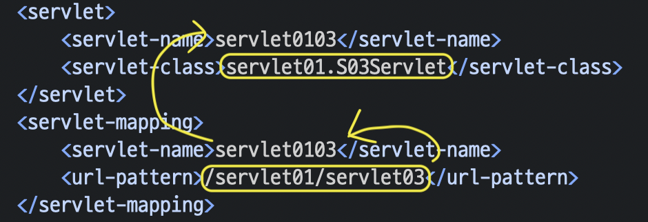 <servlet-class>servlet01.S03Servlet</servlet-class>